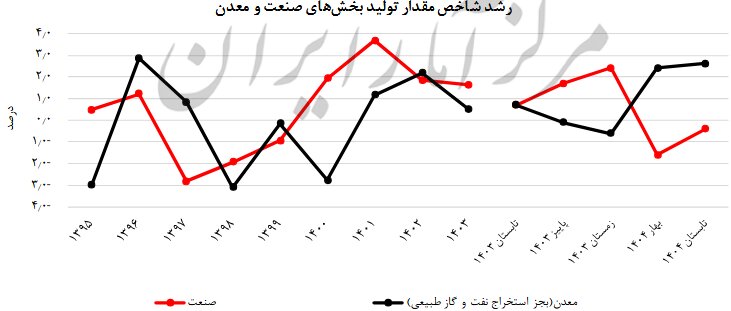 بر این اساس، رشد شاخص صنعت و معدن در سال ۱۴۰۳ به ترتیب مثبت ۱.۶ درصد و ۰.۵ درصد بود.