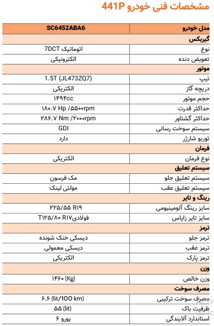 بر اساس اعلام شرکت سایپا این خودرو به پیشرانه ۱٫۵ لیتری توربوشارژ مجهز بوده و توان خروجی آن در حدود ۱۸۰.۷ اسب بخار و گشتاور ۲۸۶.۷ نیوتنمتر است. همچنین در بخش ایمنی و امکانات رفاهی، دارای تجهیزاتی نظیر سیستم ترمز ABS، کنترل پایداری ESP، کیسههای هوای جلو، جانبی و پردهای، سنسور پارک عقب، کروز کنترل تطبیقی (ACC)، سیستم ورود بدون کلید، دوربین ۳۶۰ درجه، نمایشگر لمسی بزرگ و سقف شیشهای پانوراما است.