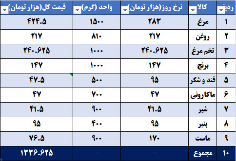بررسیهای فارس نشان میدهد که به قیمت امروز اگر کسی بخواهد همین بسته سبد کالای ۹ قلمی بخواهد توسط مردم تهیه شود، دقیقا یک میلیون ۳۳۶ هزار تومان ارزش پیدا خواهد کرد.